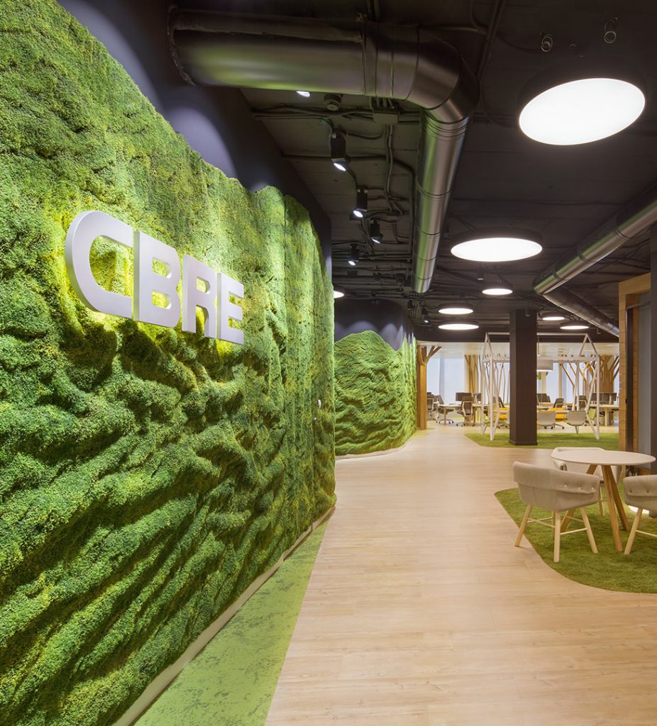 Proyecto de jardines verticales realizado para dar un Toque natural al área de descanso de las oficinas de seguro en Madrid.