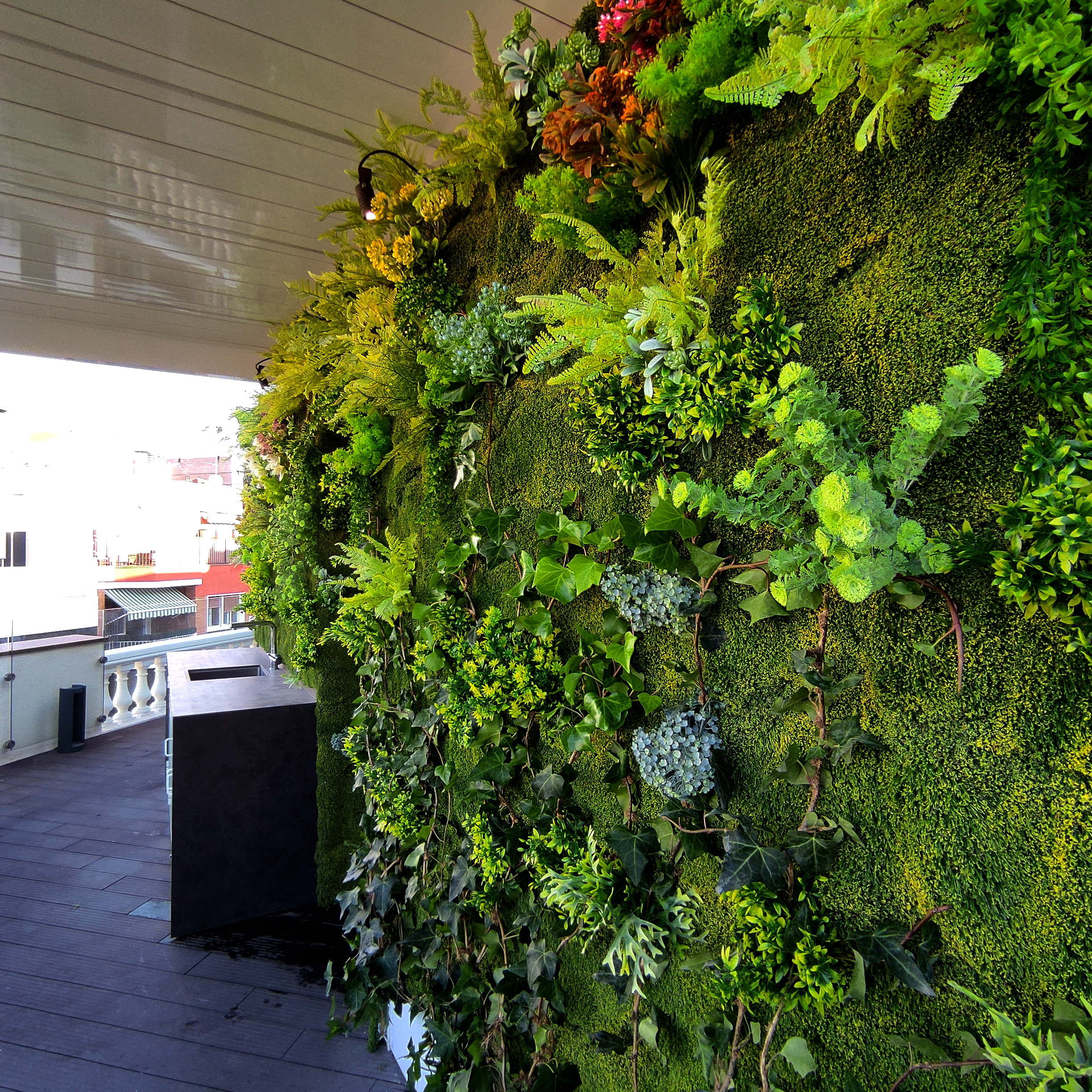 Este proyecto de jardines verticales se realizó con el objetivo de dar una sensación de naturaleza en un ático ubicado en el centro de Madrid. En esta ocasión logramos unir nuestro musgo artesano con plantas naturales.