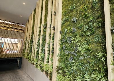 En este proyecto nuestro jardín vertical cubrió gran parte de la fachada de edificio de paseo de la castellana. Nuestro material resistente y