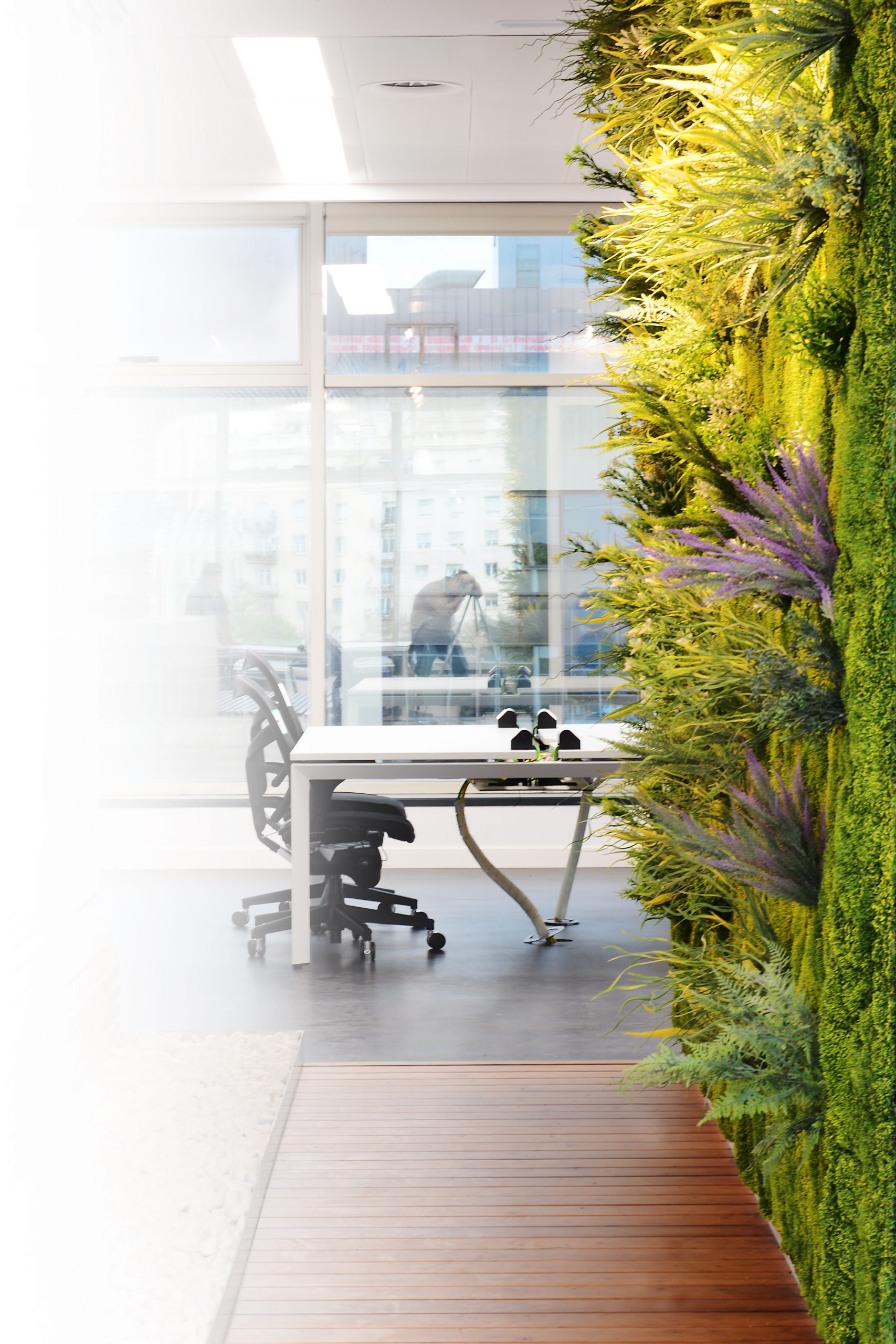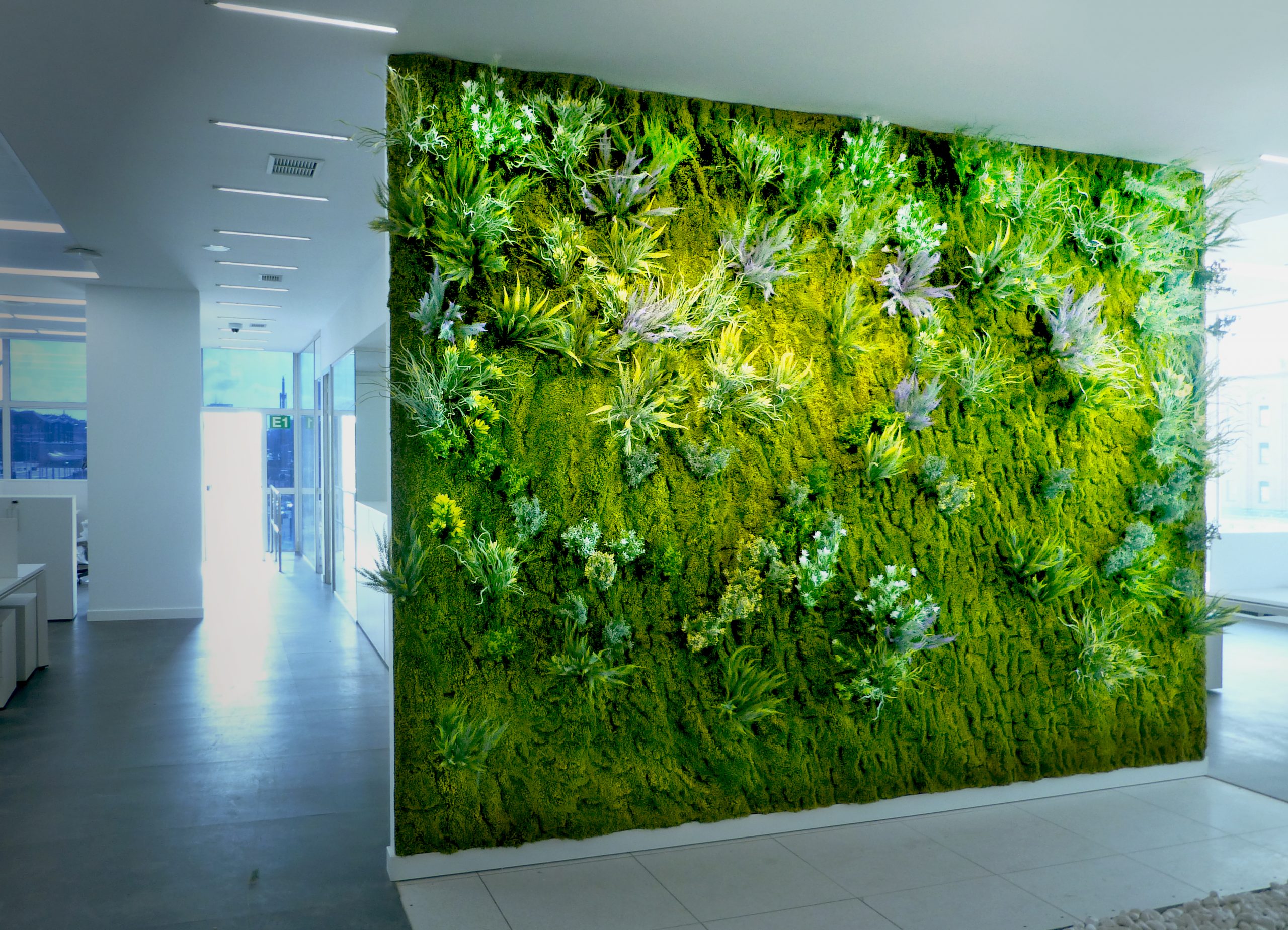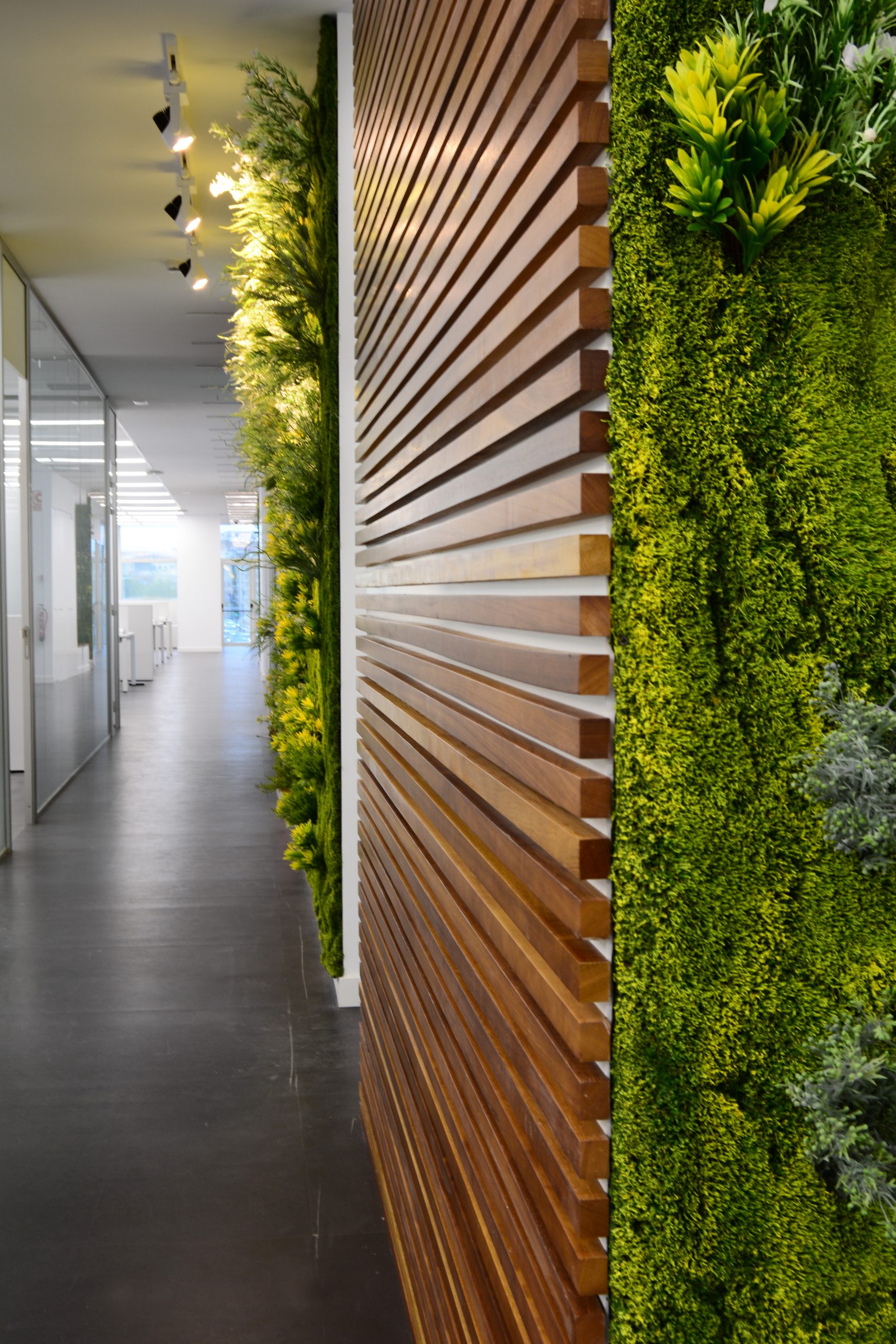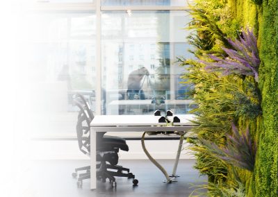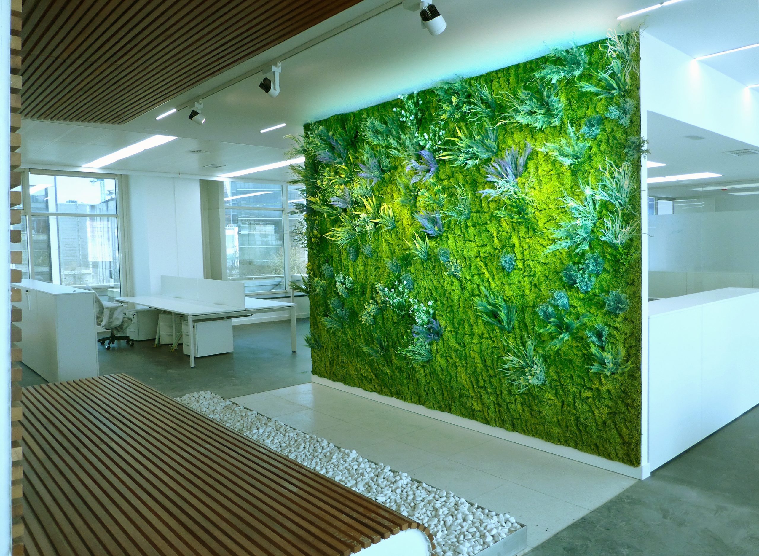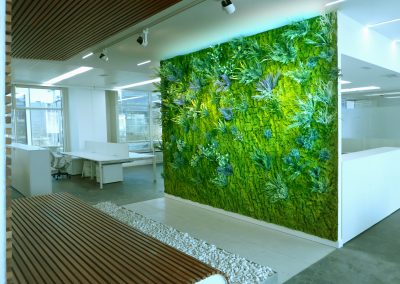 «Nuestros jardines verticales adaptados para espacios de trabajo. Son capaces de transformar cualquier entorno, ya sea una oficina tradicional o una con vistas a la ciudad, musgo artificial crea un impacto inmediato».